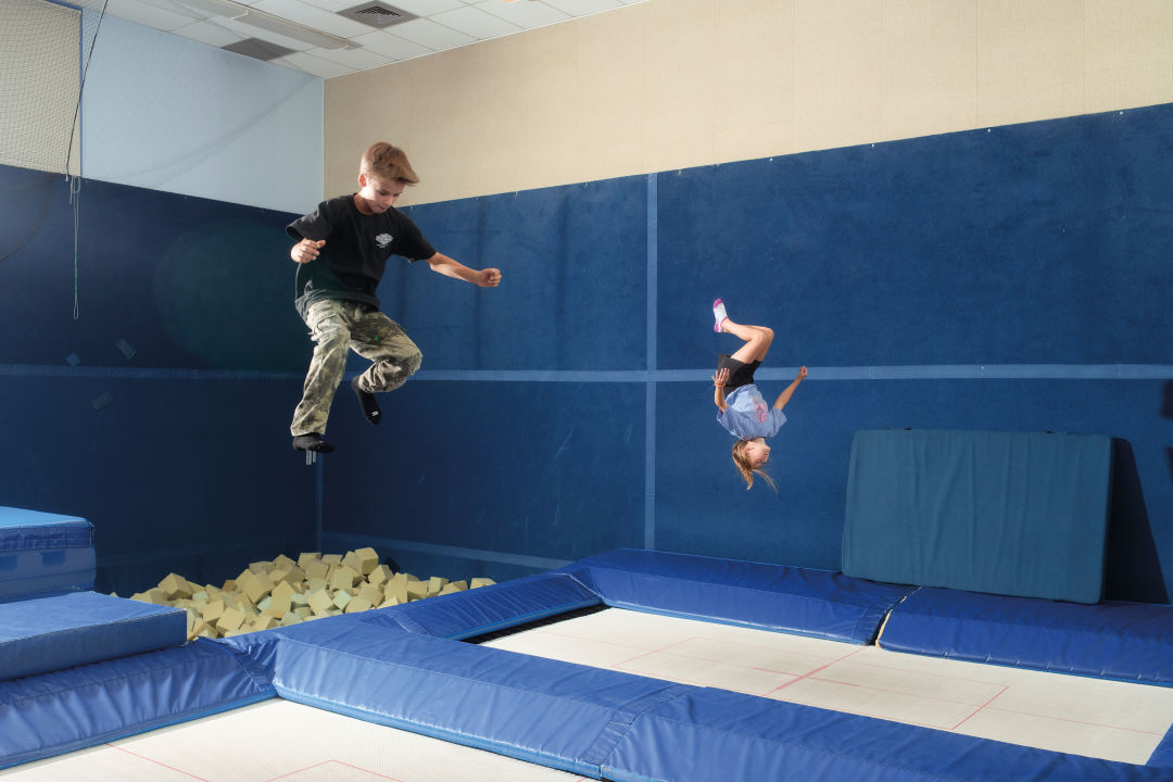 Yet it’s no academic slouch, either. In 2025, U.S. News and World Report ranked VSSA seventh among public high schools in Colorado, with a 98 percent graduation rate and a college readiness score of 85 (the state’s second highest). VSSA students “have big goals academically and athletically,” says Kari Bangston, who has taught at the school since 2014 and is in her first year as its principal. They also get to attend a school in an extraordinarily scenic setting (Minturn’s Maloit Park), with a different set of amenities than the typical public institution. Rather than a football field and track, for instance, an 11-kilometer network of groomed Nordic ski trails loops through stands of conifers and aspen groves around the school’s campus, which lies just south of Minturn on 35 acres abutting the White River National Forest. Inside a former music room, instead of rehearsing for the band, students are throwing backflips on two seven-foot flybed trampolines or practicing tricks in a foam pit before taking them on snow.