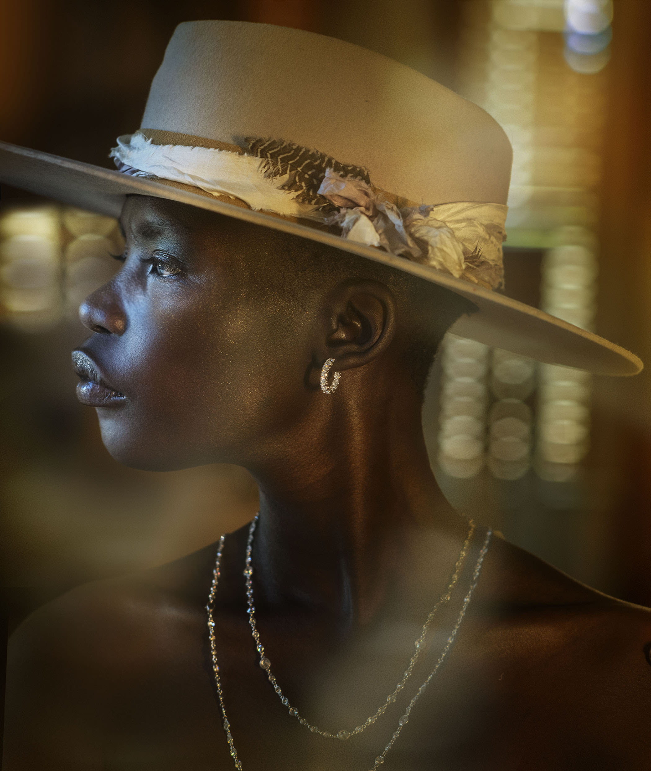 Lovely Bird Malibu Montana hat ($225) at Perch Vail, 122 E Meadow Dr, 970-668-5947; Betteridge diamond earrings ($14,800) and Estate Collection necklace ($86,700) at Betteridge Vail, 141 E Meadow Dr, 970-790-6560